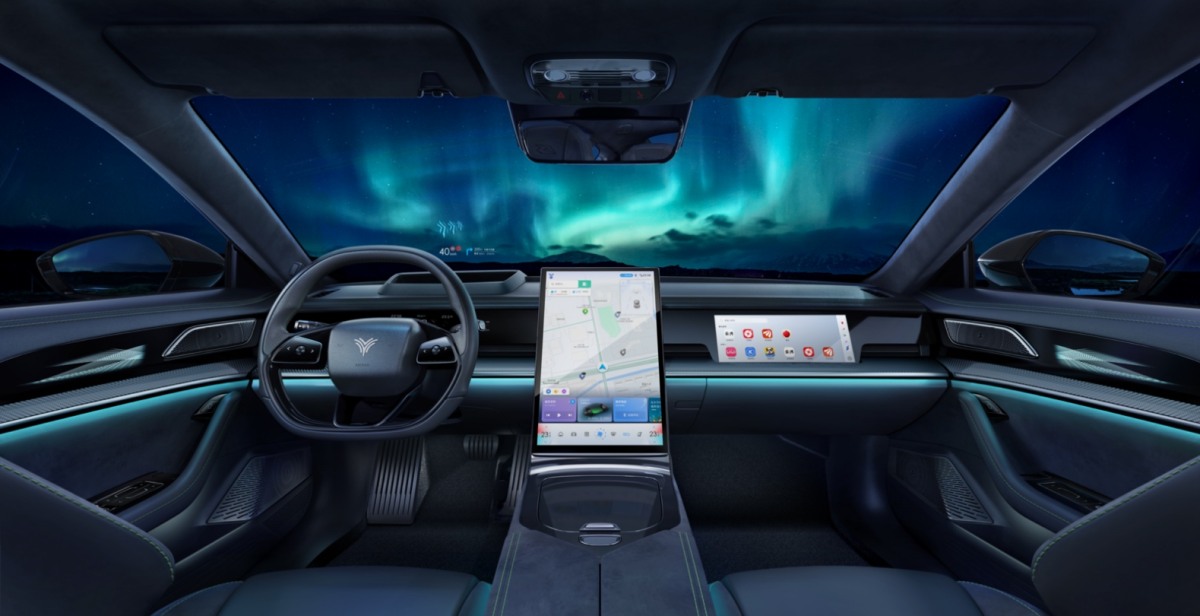 智能座舱方面,哪吒S耀世版配备17.6英寸中控屏、AR-HUD增强现实抬头显示系统、12.3英寸副驾专属影音屏、13.3英寸隐藏式仪表盘以及1.9㎡全景隔热天幕、悬浮式多功能方向盘。