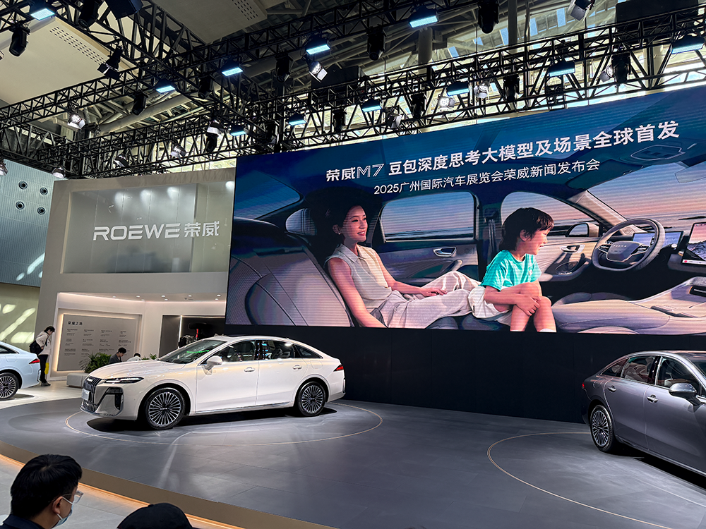 车东西11月21日广州车展现场报道,就在今天,第二十三届广州国际汽车展览会正式开幕。上汽荣威于发布会现场全球首发豆包深度思考大模型及场景,旗下长续航中大型豪华轿车——荣威M7 DMH同步亮相,首搭豆包AI车机。