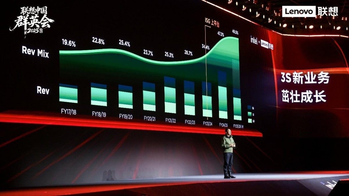 PC业务持续领跑市场,市场份额从2017/18财年的35.5%稳步提升至2025/26财年上半年的40.6%,连续刷新历史纪录。更值得关注的是,非PC业务实现跨越式增长,占比从七年前不足20%提升至近50%,成为名副其实的第二增长曲线。基础设施业务总收入在过去两年半增长175%,服务器业务稳居市场第一阵营。