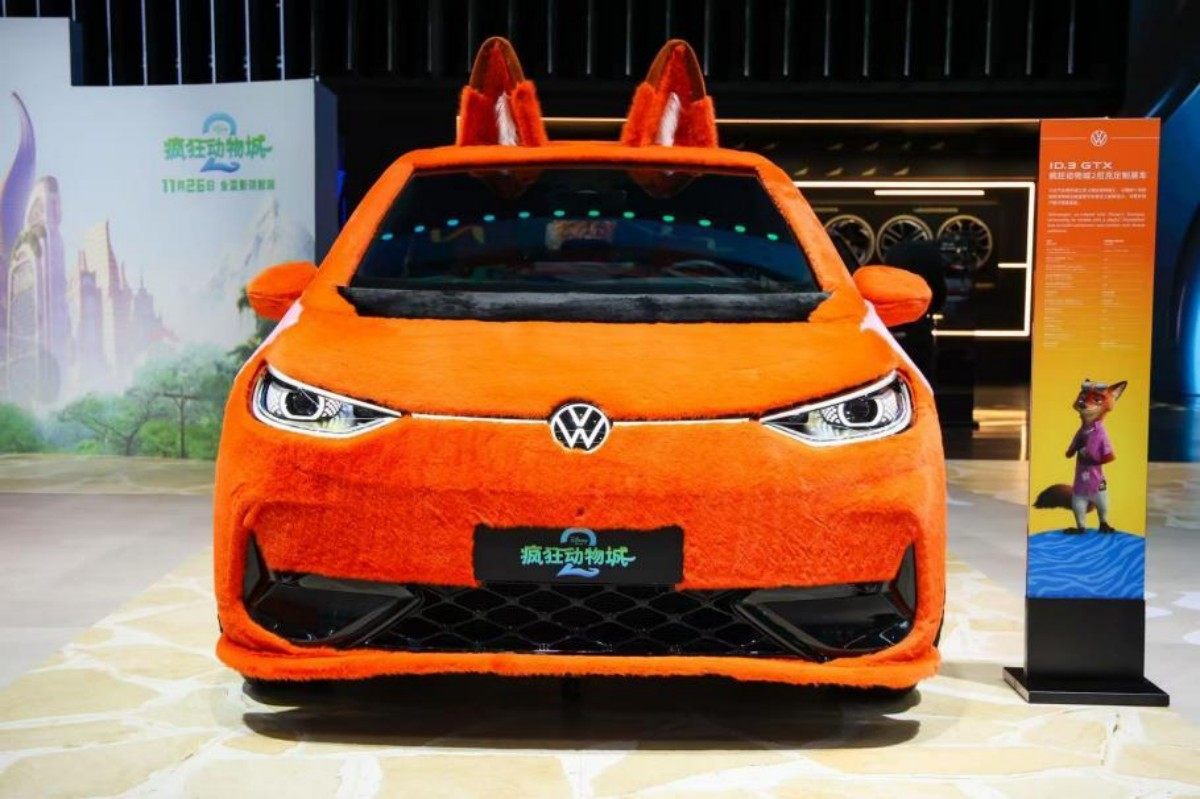 车展现场,上汽大众还展示了一款与迪士尼《疯狂动物城2》联名合作的ID.3 GTX尼克定制展车,以其独特的亮橙色涂装和主题造型吸引观众互动。整个展台以“全势能,更出众”为主题,集中展示了其焕新产品阵容。