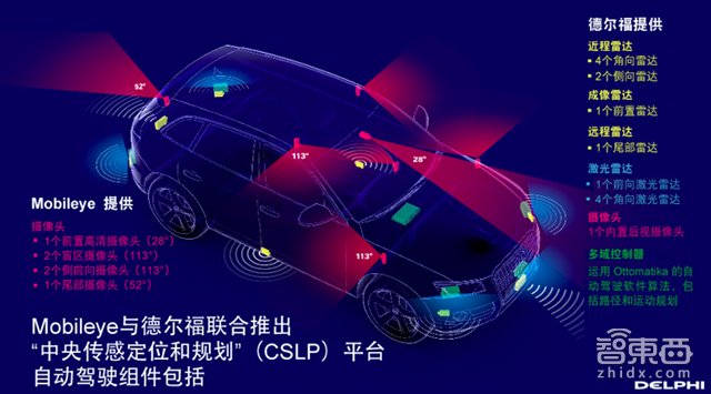 2016年8月,德尔福宣布将和Mobileye合作,共同打造自动驾驶系统CSLP。CSLP被德尔福形容为交钥匙的解决方案,也是德尔福如今针对自动驾驶的核心产品。而在这个核心产品的架构中,我们可以看到Mobileye在其中扮演了什么样的重要角色。