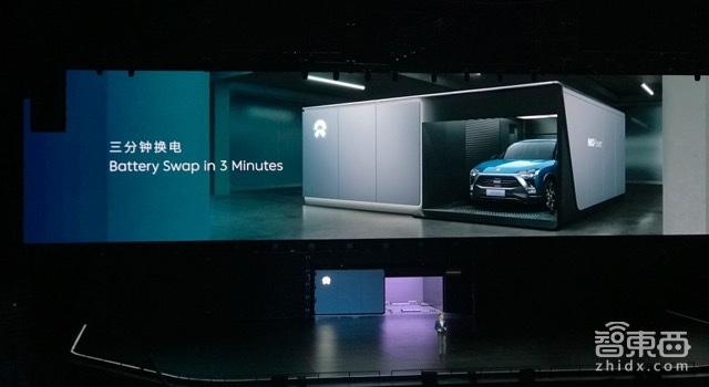 用户开到换电站后,ES8会自动倒入换电站,然后系统就会自行为其更换电池,然后再自动开出来,李斌在现场演示了换电过程,总计耗费了2分56秒。到2023年,其要做到3公里的服务半径,在主要城市部署1100座换电站。