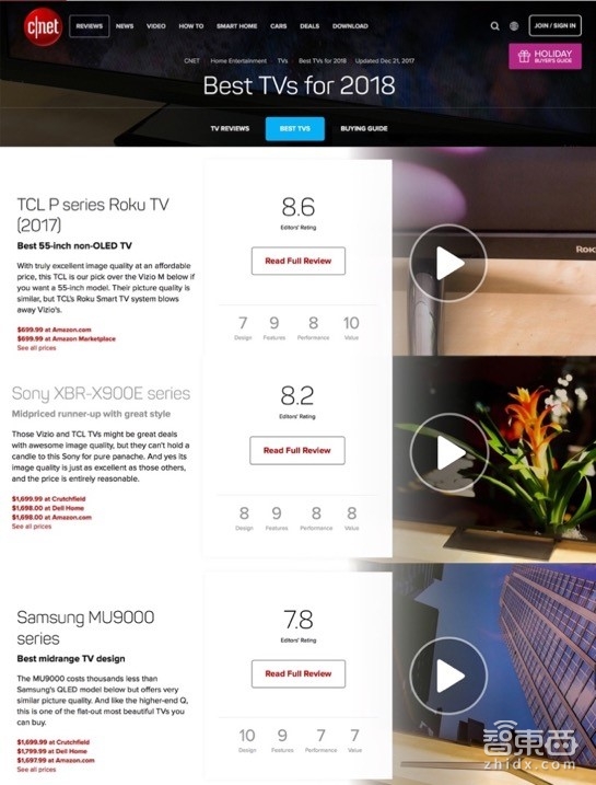 2017年12月,在全球知名的科技和消费电子媒体CNET发起的Best TVs for 2018(2018最佳电视)评选中,TCL电视产品“P series Roku TV”,力压索尼、三星等电视巨头,以8.6分超高分名列前茅。
