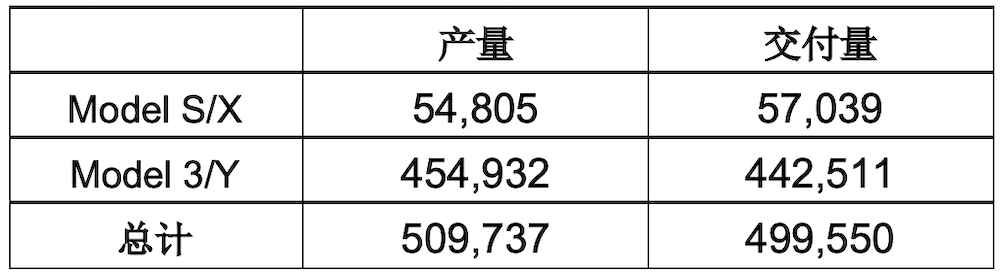 数据显示,特斯拉全年产量50.97万辆,交付量为49.96万辆,创下历史记录,同时马斯克“年交付50万辆”的目标也基本实现。