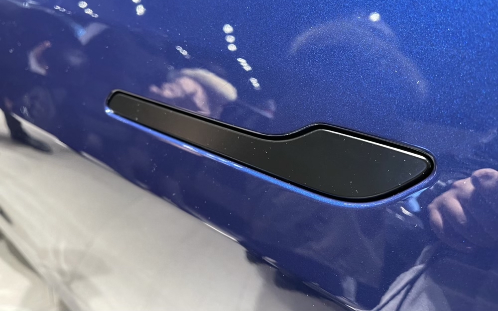此前Model S、Model X、Model 3车型的门把手都是亮面金属制成,虽然外观很好看,但容易沾染指纹。Model Y车型的门把手更换成磨砂材质,不易沾染指纹,但材质变成了塑料。