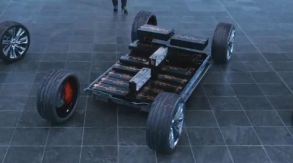 如果电芯水平排布形成模组,单个电池包最多可以容纳24个模组,分为上下两层,这一电池包适用于卡车、以及大型SUV。