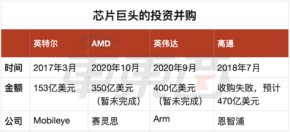 再往后,英伟达和AMD分别在去年宣布收购Arm和赛灵思,收购价格也是空前的高,分别达到400亿美元和350亿美元。