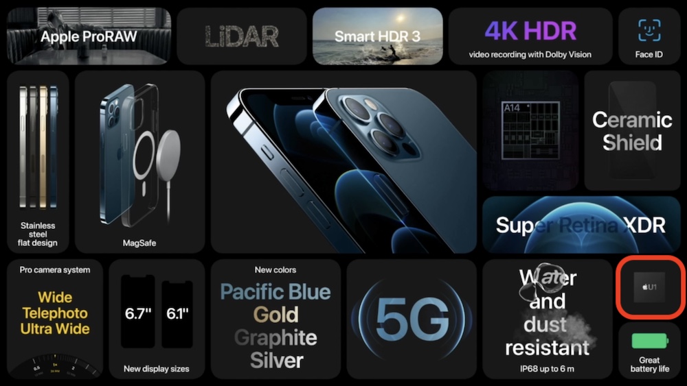 在2020年发布的iPhone 12系列中,U1芯片也是其主要硬件配置之一。