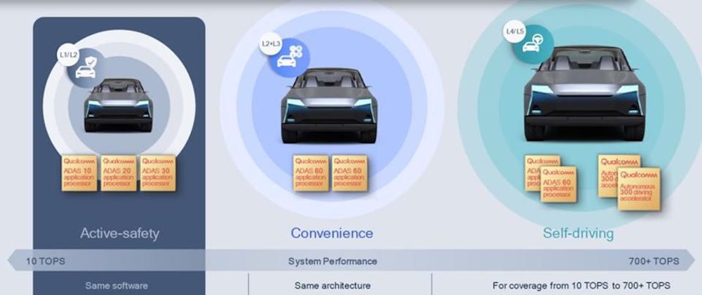 ▲Snapdragon Ride自动驾驶平台不同算力等级