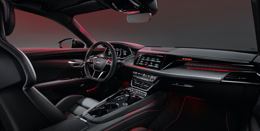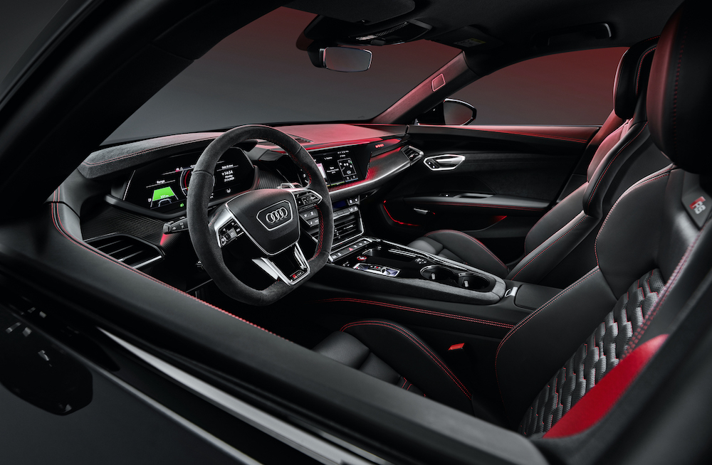 在内饰方面,奥迪e-tron GT整体具有很强的动感,运动版RS车型还有动感更强的红色缝线。