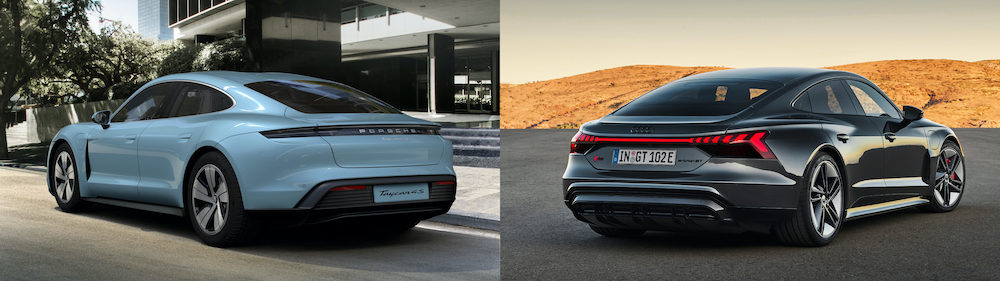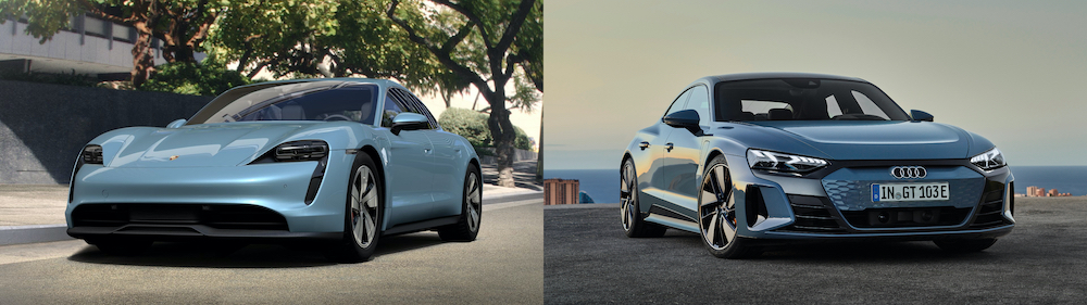 ▲保时捷Taycan(左)奥迪e-tron GT(右)