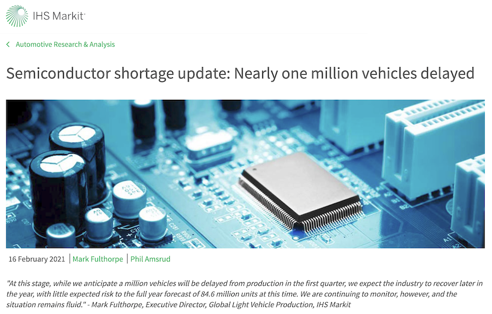 ▲IHS Markit发布汽车芯片短缺报告