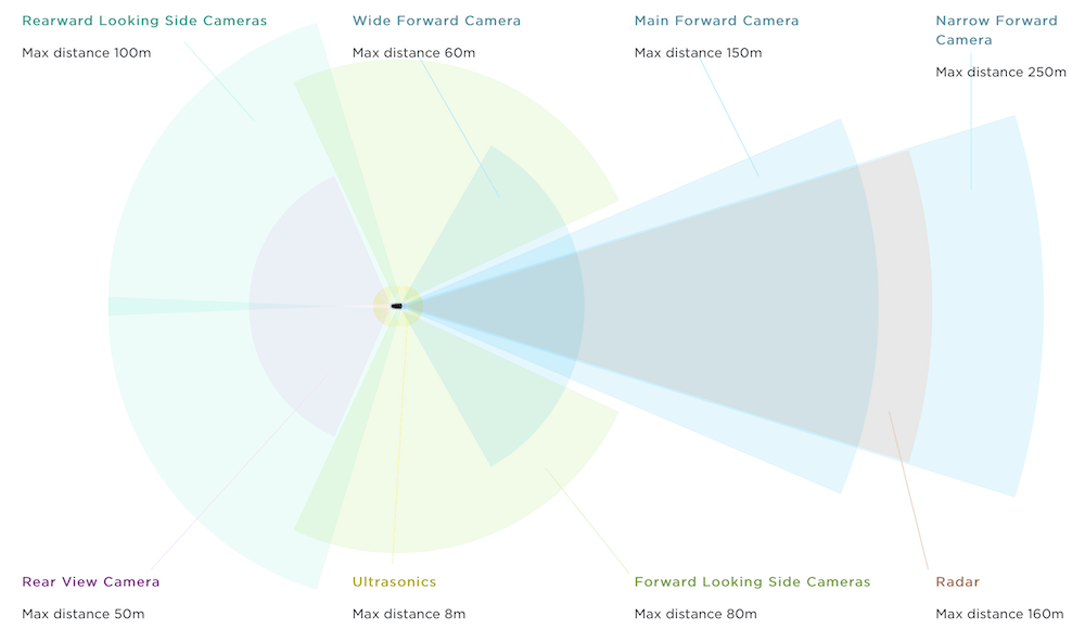 ▲特斯拉传感器配置