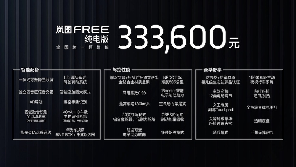 ▲岚图FREE纯电版关键信息