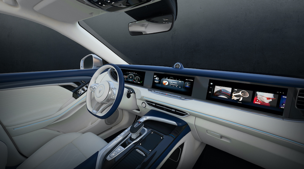 座舱内还有不少豪华配置,全景天幕可以多级调节透光率,在夏季阳光强烈时,可以降低透光率,实现紫外线隔绝≥99%。前排主、副驾座椅能实现12向电动调节,配备通风、加热、按摩功能。车内配备丹拿音响,共有10个扬声器。