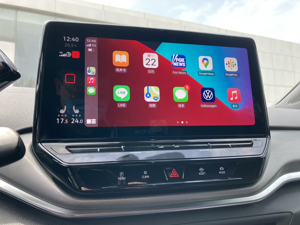 对比相同级别的合资车型,大众ID.系列标配了无线CarPlay,车机自带系统的本地优化仍然不足。