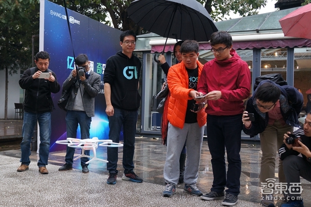 当天京城小雨,亿航的投资人真格基金创始人徐小平亲自现身现场为“爱徒”站台,并戴上虚拟现实眼镜演示了Ghost 2.0的“第一人称”航拍技术。