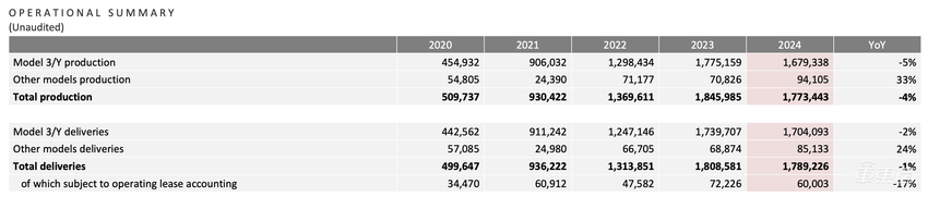 放眼2024全年来看,特斯拉共生产新车177.34万台,交付新车178.92万台,这也是从2020年以来出现了首次下滑。