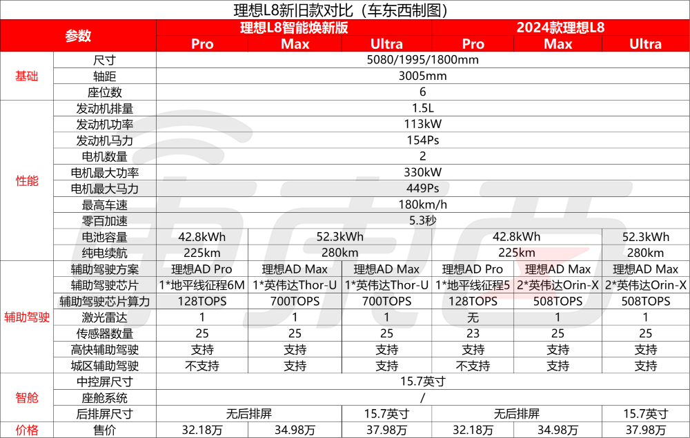 新款理想L7、L8两款车型、三个版本同样保持了价格不变,理想L7售价区间为30.18~35.98万元,理想L8售价区间为32.18~37.98万元。