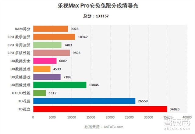 日前,安兔兔曝光了一款乐视旗舰新机——乐Max Pro,安兔兔不仅给出了该机的完整配置,并提供了详细的破13万的跑分成绩。