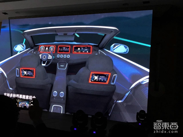 Cockpit:多屏互动,整合车内外信息,智能座舱系统。比如在娱乐(中控、副驾后座互动)、控制、导航、仪表、安全、整合等方面形成多屏互动。