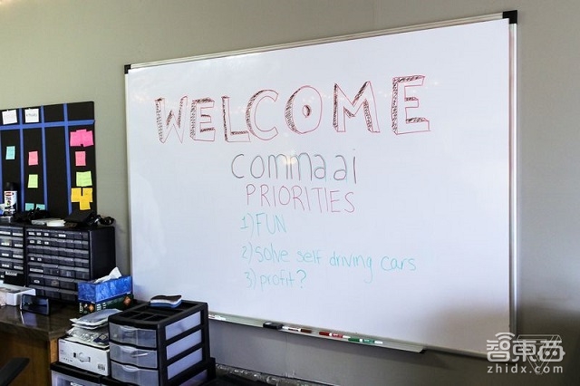 软件是免费的,企业本身不销售硬件,这种模式自然会引起人们思考一个问题:VC支持的Comma.ai如何赚钱?霍兹回应称:“大家都是怎样赚钱的?我们的目标就是拥有一个基本网络,我们希望能拥有自己的自动驾驶汽车网络。”他还说Comma.ai会与一些售后供应商合作,只是目前这些并不是优先处理的事情。在Comma.ai车库白板上列出了公司的目标:最重要的事情是乐趣,然后是解决自动驾驶汽车问题,最后才是利润。