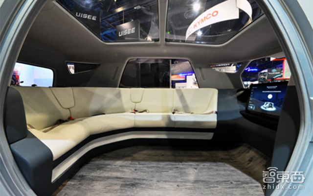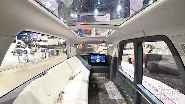 驭势科技将该款无人车称为“城市移动包厢”——车内部座椅呈环形排列,普通汽车常见的方向盘和仪表盘均未搭载。同时,整车去除了突兀的传感器布局,所有传感器都嵌入车身内。车内外还搭载了多个屏幕供乘客与行人交互。该车针对城市出行场景设计,在车内还能满足乘客的娱乐与工作需求。
