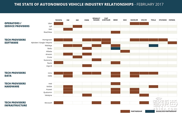 除了投资、收购其他公司和人才之外,自动驾驶行业的公司还积极寻找合作伙伴,以避免落出高价值链,或者规避核心技术供应商单一带来的风险。