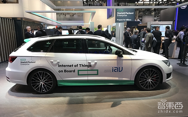 在消费者业务之外,惠普还有许多企业级业务。本次MWC上,HPE(惠普企业业务部门)带来了惠普互联汽车解决方案的演示——并在现场直接摆放了一辆西亚特汽车。