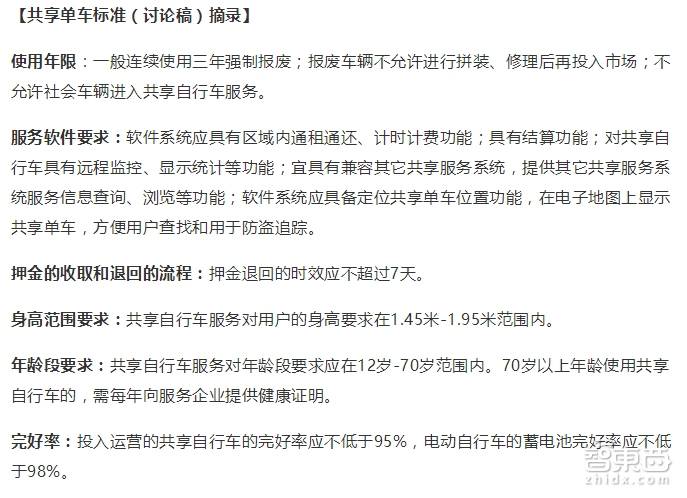 而日前在上海出炉的首个共享单车团体标准(讨论稿)也部分坐实了该行业人士的说法。这个由上海质检局联合自行车行业协会共同出台的标准,在目前看来对所有共享单车平台都是当头一棒,它对共享单车提出了远超出现在行业设想的要求: