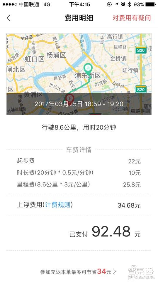 尽管易到不太被看好,但这并不妨碍易到司机接到单子。在接受智东西的采访时,开现代名图的李师傅说他一天至少能接到20单。但令他哭笑不得的是,其中近半单子带给他的收入,不超过30元。然而另一边,乘客却在纷纷喊贵——上海的黄先生用易到创造了8.6公里打出92元的记录:22元起步费加10块时长费加上25.8元的里程费共计57.8元,再加此基础上0.6倍的高峰上浮费用34.88元。平均一公里,黄生付出了10.7元。无独有偶,重庆的王小姐也反映,打到过44公里404元的易到专车。