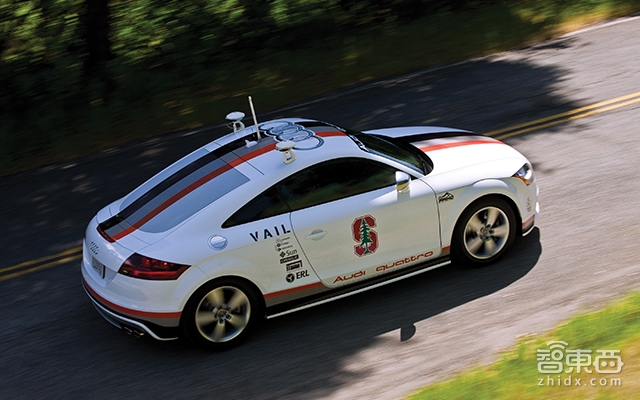 (跋涉在派克峰赛道上的奥迪TT,车身上斯坦福大学校徽清晰可见)