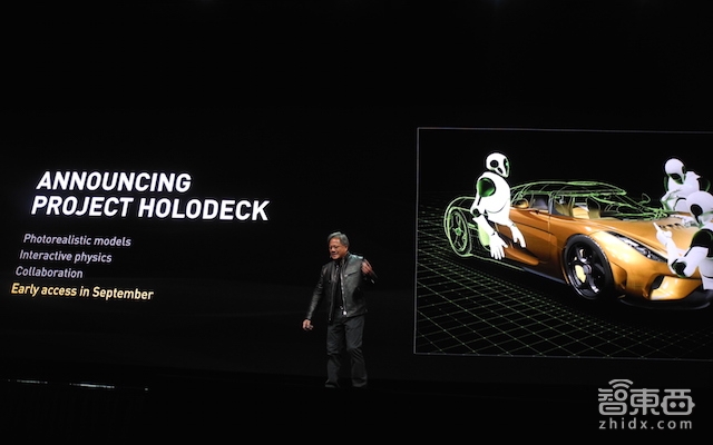 寒暄完了,接下来进入正题。非常意外地,老黄第一个发布的项目并不是AI相关,而是一款VR多人交互平台Holodeck。