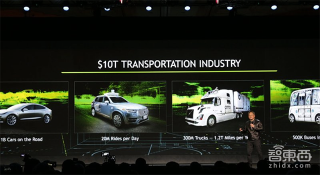 如果你经常听黄教主的演讲,除了那件标志性的皮衣,你肯定还会留意这样一张PPT,即教主每次讲到自动驾驶的时候,都会先说(展示)一下,10万亿!交通可是10万亿美元的市场啊。