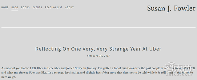 今年2月19日,之前在Uber工作的女工程师苏珊·福勒(Susan Fowler)在社交媒体上写了一篇文章,爆料了其在Uber工作期间遭到了男上司性骚扰一事。