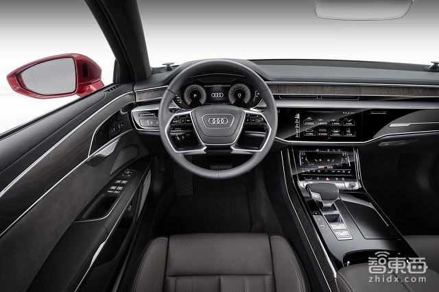 在奥迪汽车中,A8第一次使用了中央触摸屏,这是一块25.7厘米的屏幕,它与后面的面板无缝衔接。当你进入汽车时界面就会打开,并不是打开点火开关才会启用。