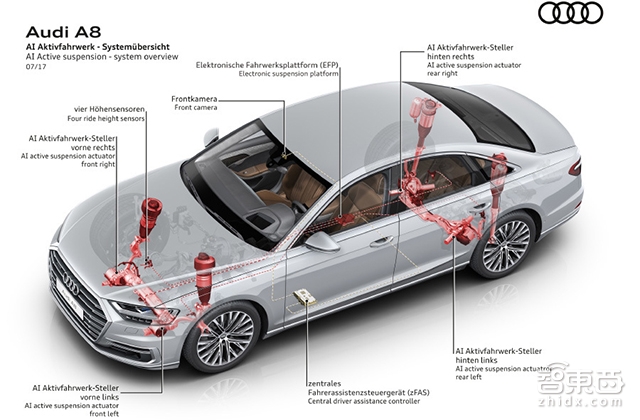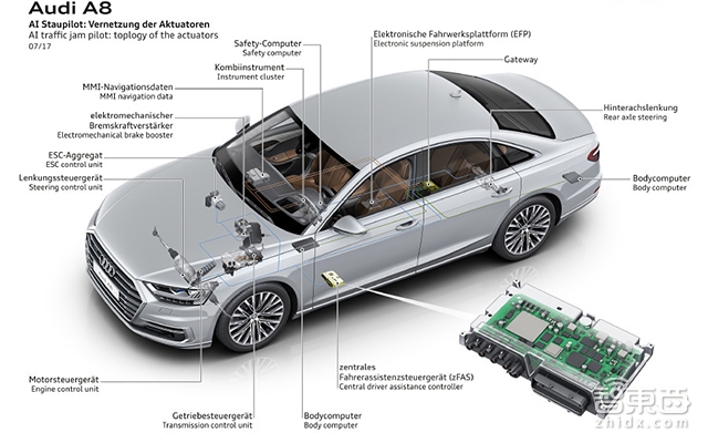 那么新A8是怎么实现自动驾驶的?当然是全副武装的硬件+AI软件了。