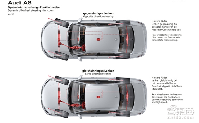 (新A8的全轮转向系统)