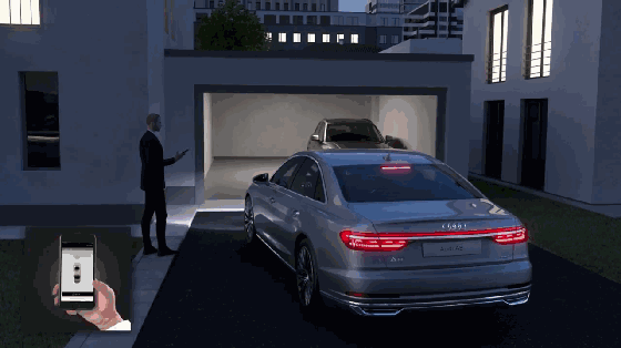 除了这个traffic jam piolt,新A8还有另外一个自动驾驶能力,就是遥控自动停车…,即用户下车后在手机APP上按一下,车辆就能自己开到车位或者车位去了。