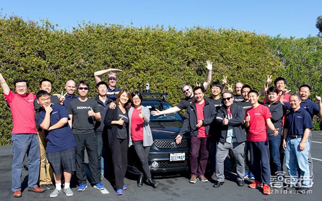(DeepMap早期团队,测绘车右三为CEO吴夏青,左一为COO罗维,左三CTO马克·惠勒)