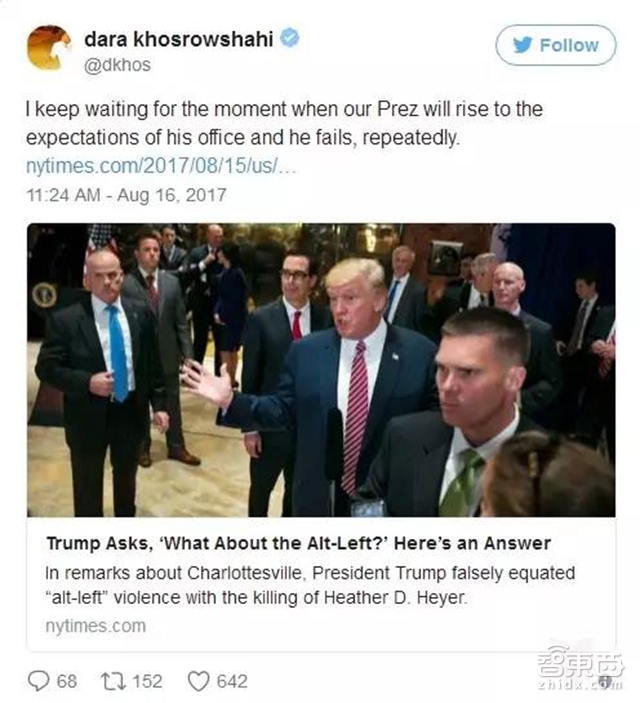 Khosrowshahi一直对特朗普看不顺眼,这也难怪,作为一名伊朗移民,他对美国总统特朗普的难民政策意见很大。在Twitter上和川普公开叫板互怼是他的日常。
