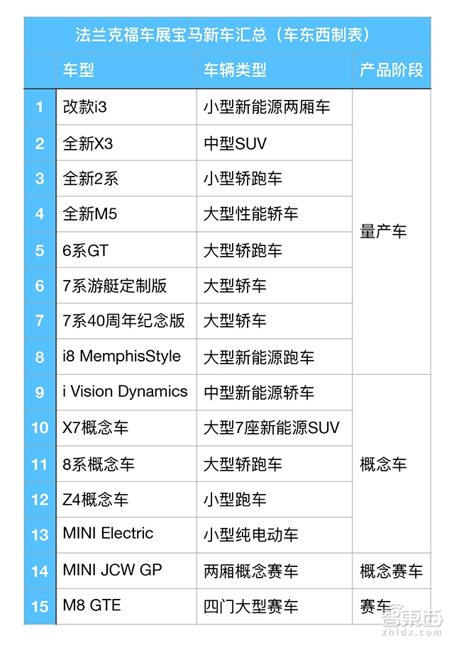 根据车东西不完全统计,宝马集团(含MINI和劳斯莱斯)本次至少带来了15个新同学,如下表。