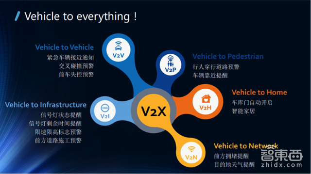 现在大家说的是更广泛的车联网的概念,除了我们车跟云端这部分的连接之外,我们把它扩展到更大的一个部分,比如车跟车,车跟人,车跟运营商的网络以及车跟路边的交通设施,比如与红绿灯等交通设施的交互,所以在后面我们交流的时候,我们说车联网相关概念的时候,V2X也是以比较广义的概念来谈这个事情。