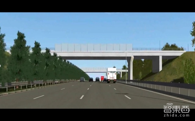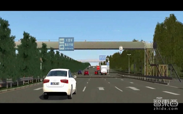 在仿真环境里使用高精地图或者实现自动驾驶方案会更容易,也很有依据。这是一个视频,我简单地截了几张视频的图,让大家能够看得更清楚一些。第一张图是比较近的,我们从鸟瞰图拉到驾驶员视角了,蓝色看板的照片是自动从我们高精科技车上扣出来的。现在这张图是大家能够看到里面有两个桥。这些场景都是我们在南四环采集的数据。有兴趣,可以对比一下现实的场景。