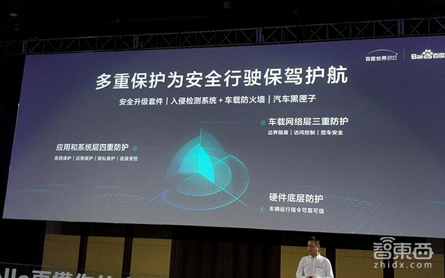 在车内建立起支付以及自动驾驶能力过后,车载系统会直接与车主的财产和生命安全挂钩,对此百度提供四重安全保护,包括安全升级套件、入侵检测系统、车载防火墙、汽车黑匣子。